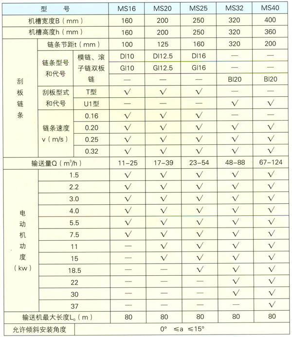 二、MS型刮板輸送機(jī)主要參數(shù)